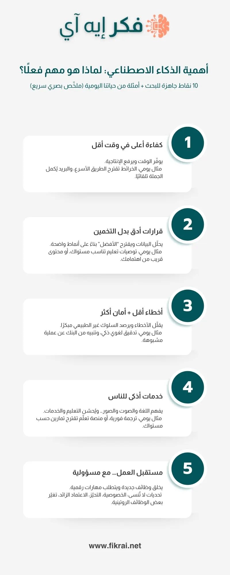 10 نقاط جاهزة للبحث تشرح أهمية الذكاء الاصطناعي… بأمثلة قريبة منك.