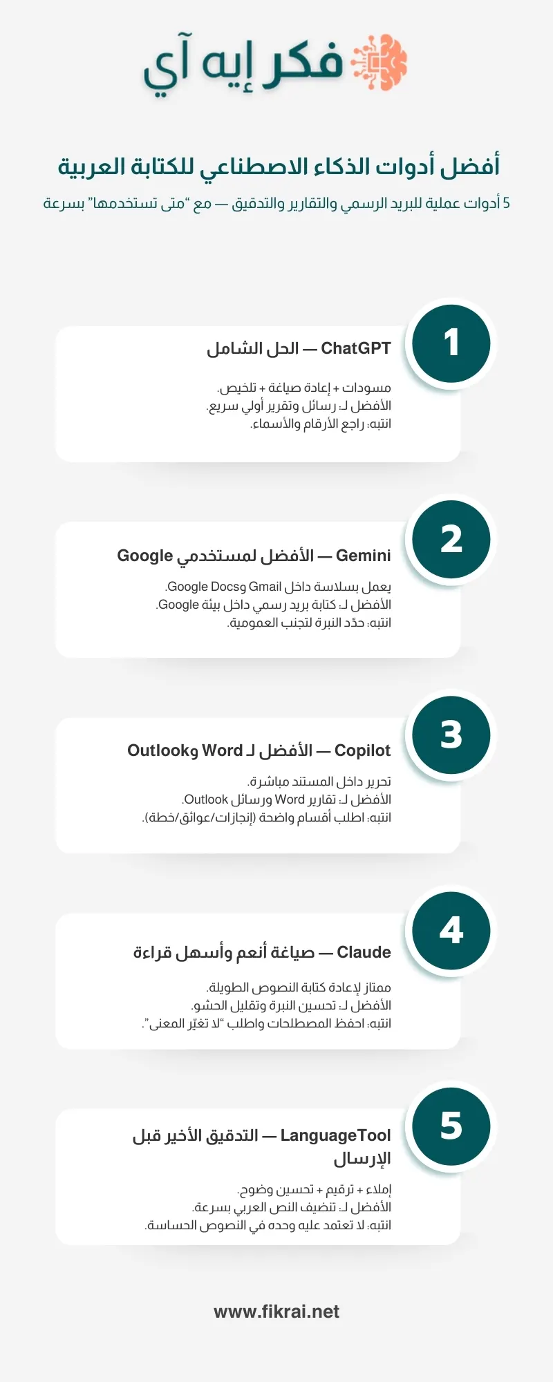 الخلاصة: الأداة الجيدة لا تُقاس بجمال الكلام، بل بقدرتها على إنجاز مهمة محددة: بريد واضح، تقرير مرتب، أو إعادة صياغة بلا حشو.